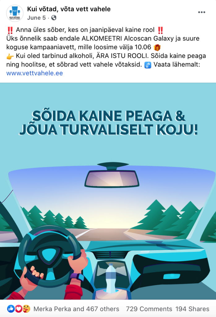 Kampaaniat toetavaks infokogumiks uuendasime ka vettvahele.ee veebikeskkonna, kust leiab lisaks vastutustundliku alkoholitarbimise põhimõtetele ka häid näpunäiteid vett vahele võtmiseks.